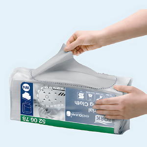 reduce el tamaño del empaque ocupando menos espacio. Su apertura fácil hace que sea más sencillo tomar el paño.